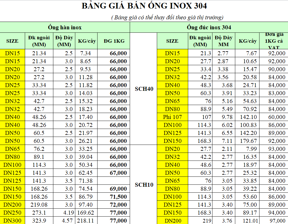 Do các nguyên nhân chủ quan và khách quan giá ống inox có sự biến động liên tục theo từng thời điểm, để được tư vấn về kỹ thuật và nhận báo giá chính xác nhất vui lòng liên hệ