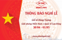 Nhân dịp giỗ tổ Hùng Vương & 30/4 – 1/5, Công ty C Phn Công Ngh Phú Thành kính chúc quý khách hàng có một kỳ nghỉ lễ vui vẻ bên gia đình và người thân.
