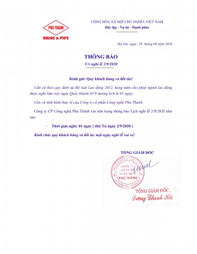 Thông báo nghỉ lễ Quốc khánh 2/9/2020