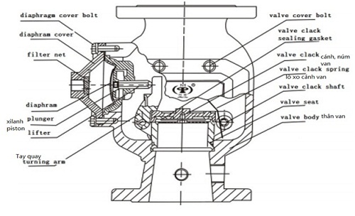 Van gồm: thân van, đế van, cánh van, tay quay, lọc, …